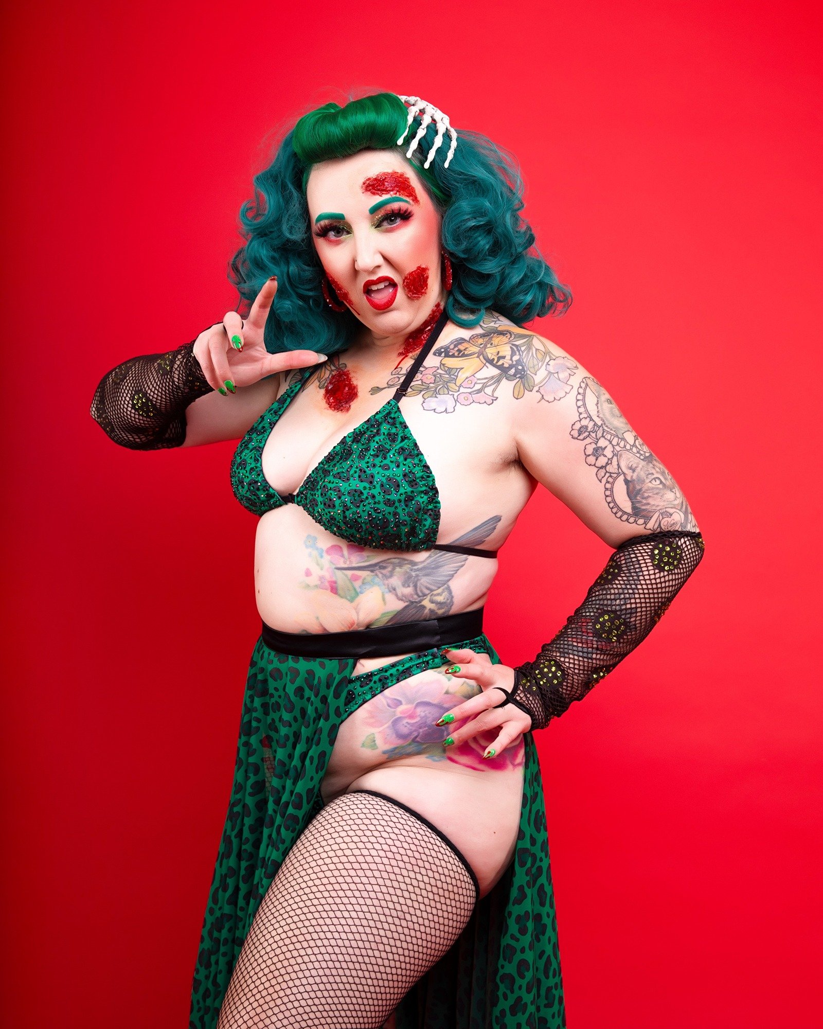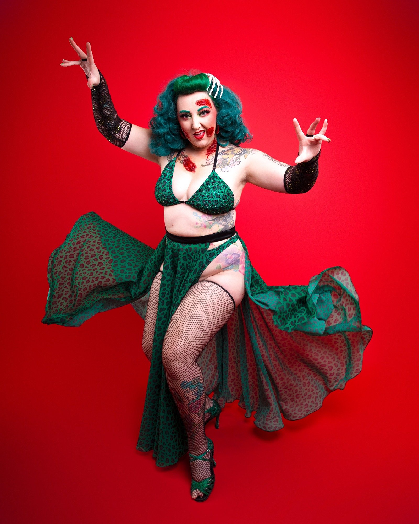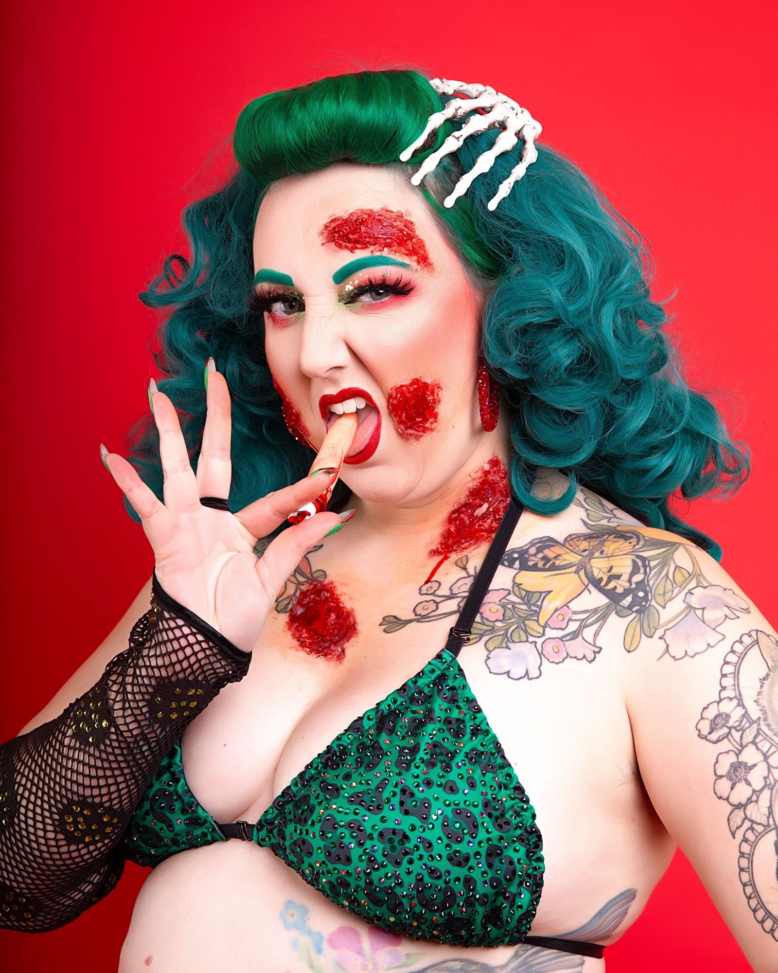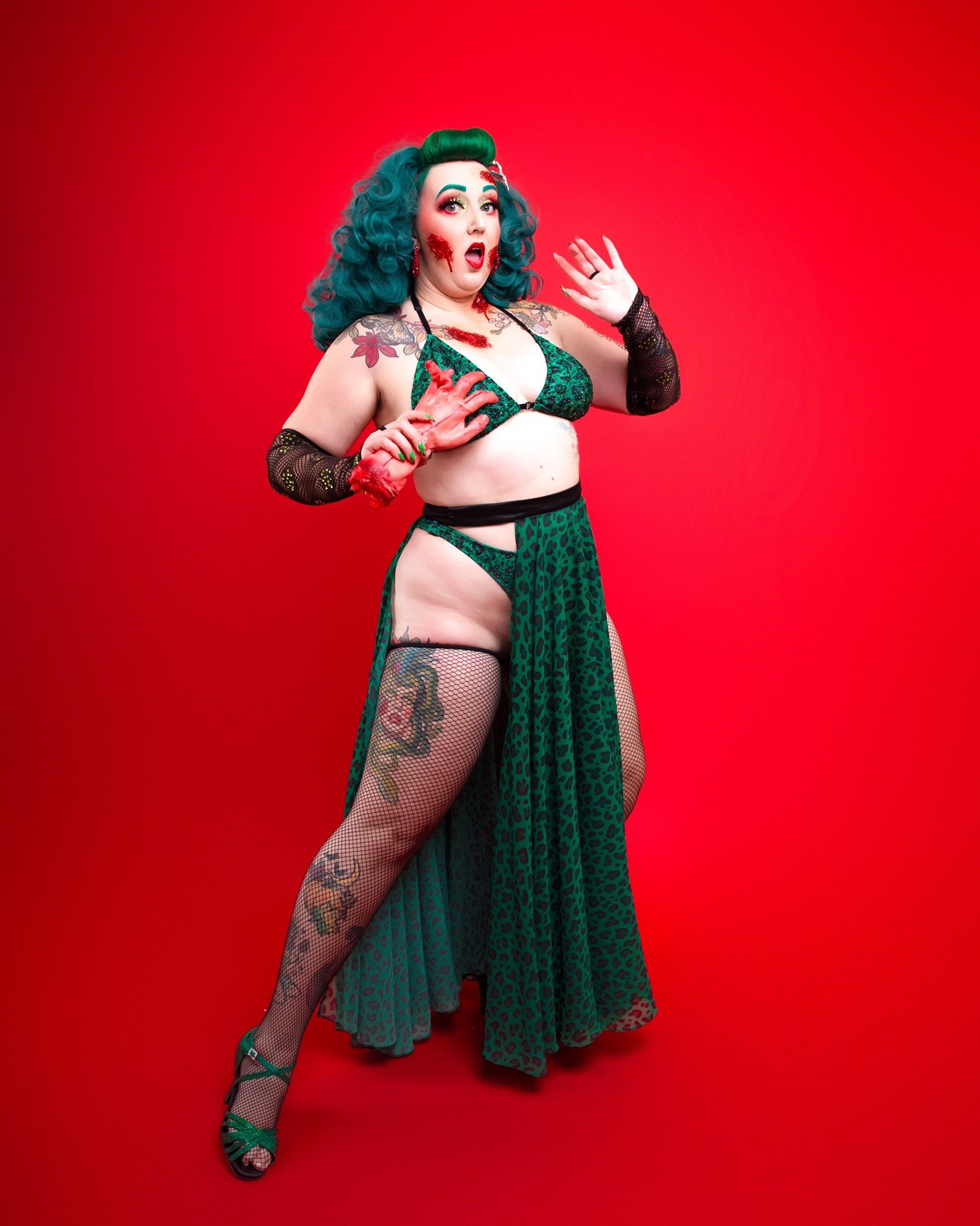 A silly combination of Burlesque and gore. Lady Wildflower is a hungry zombie with one thing on her mind: braaaaaains! Includes special effects makeup, fake blood and a jelly brain sploshing finale.